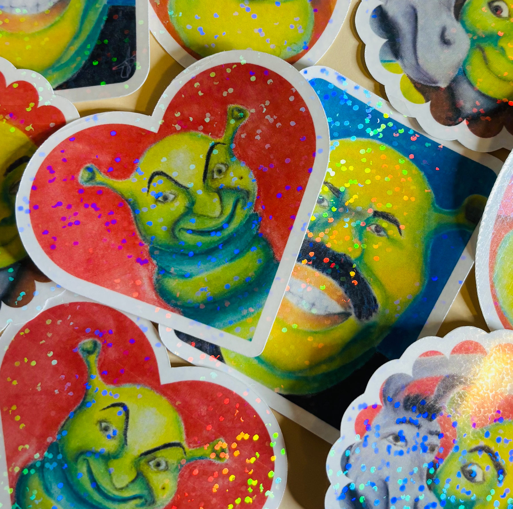 Includes All 4 Shrek series stickers: - Best Buddies - Handsome Shrekward - Steve Harvey Shrek - Shrekapillar